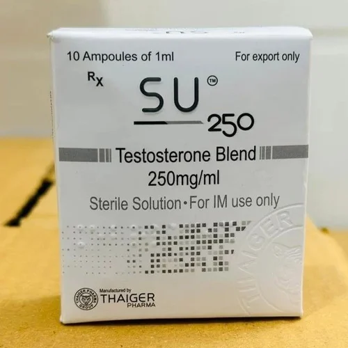 Su-250 Injection by Thaiger Pharma contains a blend of four testosterone esters—Propionate, Phenylpropionate, Isocaproate, and Decanoate—designed to provide a sustained release of testosterone. It is used for hormone replacement therapy and muscle growth enhancement, helping to maintain stable testosterone levels. Administered intramuscularly, it should be used under medical supervision.
